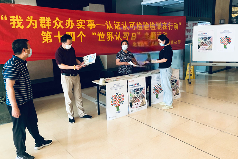 6月9日,是第十四個“世界認可日”,是世界各國宣傳和推動認證認可工作的共同節日。為了深入貫徹落實國家市場監督管理總局(國家認證認可監督管理委員會)以及朝陽區市場監督管理局決策部署,推動認證認可檢驗檢測服務民生、服務發展,北京坤標檢驗認證有限公司作為認證認可行業的一支生力軍,我們以“我為群眾辦實事——認證認可檢驗檢測在行動”主題宣傳活動為契機,組織公司員工開展了形式多樣的宣傳活動: